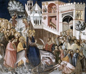 Looking at the medieval and renaissance depictions of Jesus’ entry into Jerusalem, the tendency seems to be to paint a portrait in which Jesus might struggle to recognise himself. Perhaps, in the case of Giotto, this is as much to do with the power of patronage as with the artist’s vision.